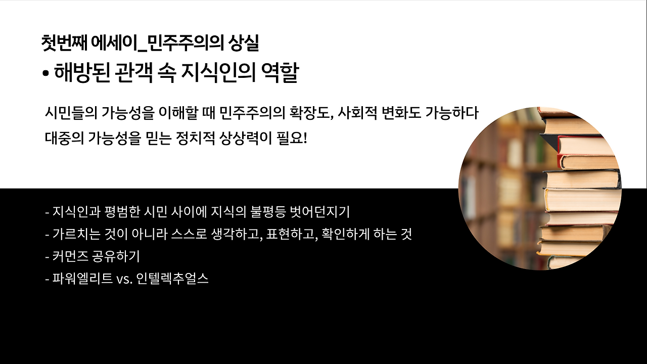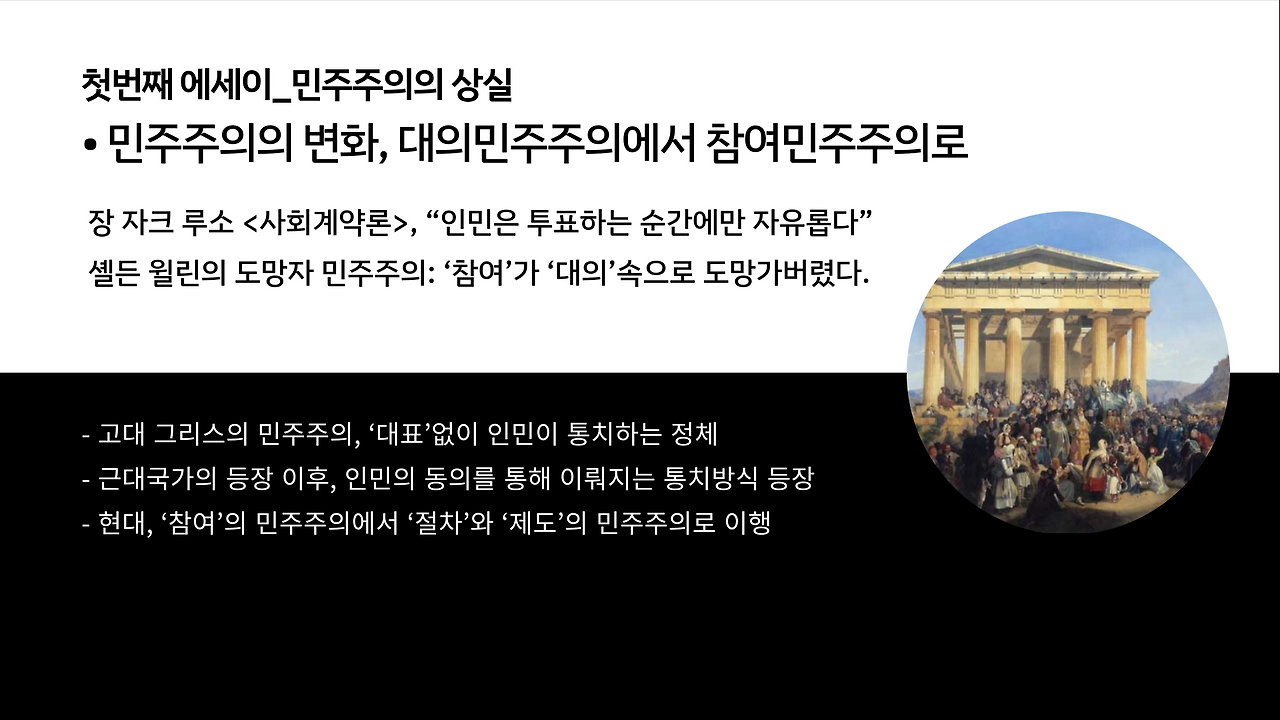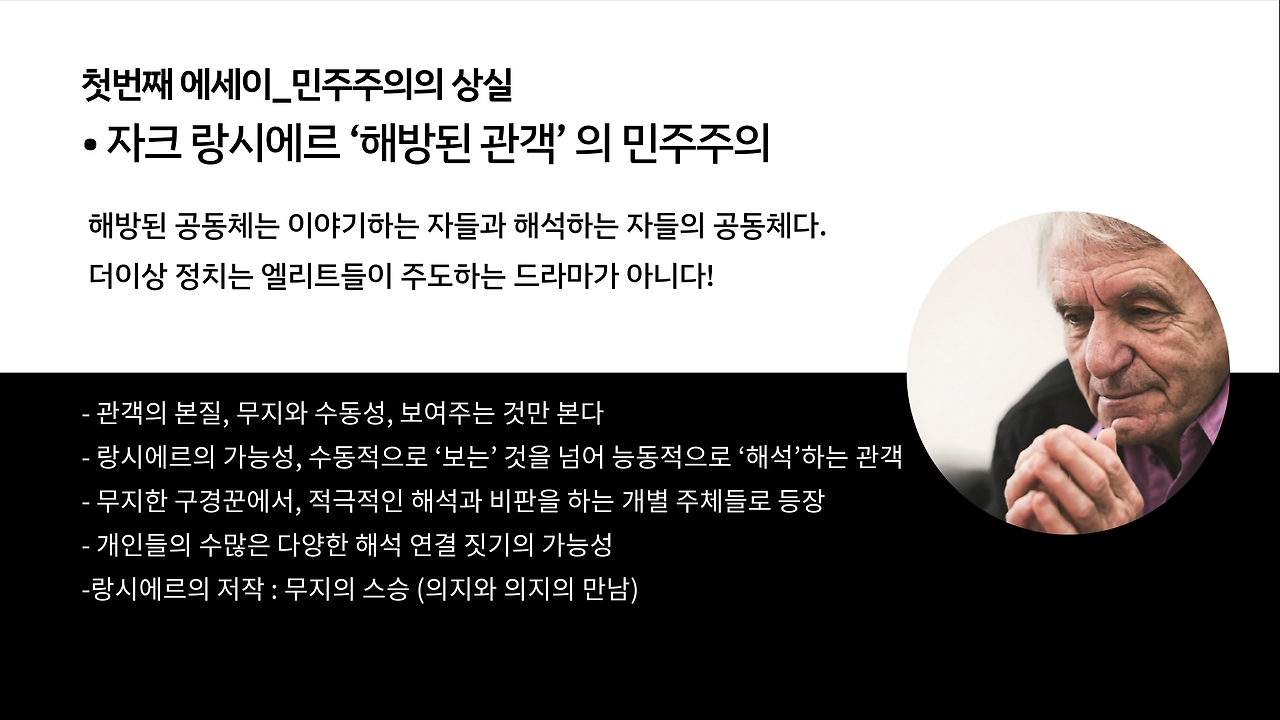 첫번째 에세이 _ 민주주의의 상실 : 도망자 민주주의의 시대, 구경꾼들의 민주주의