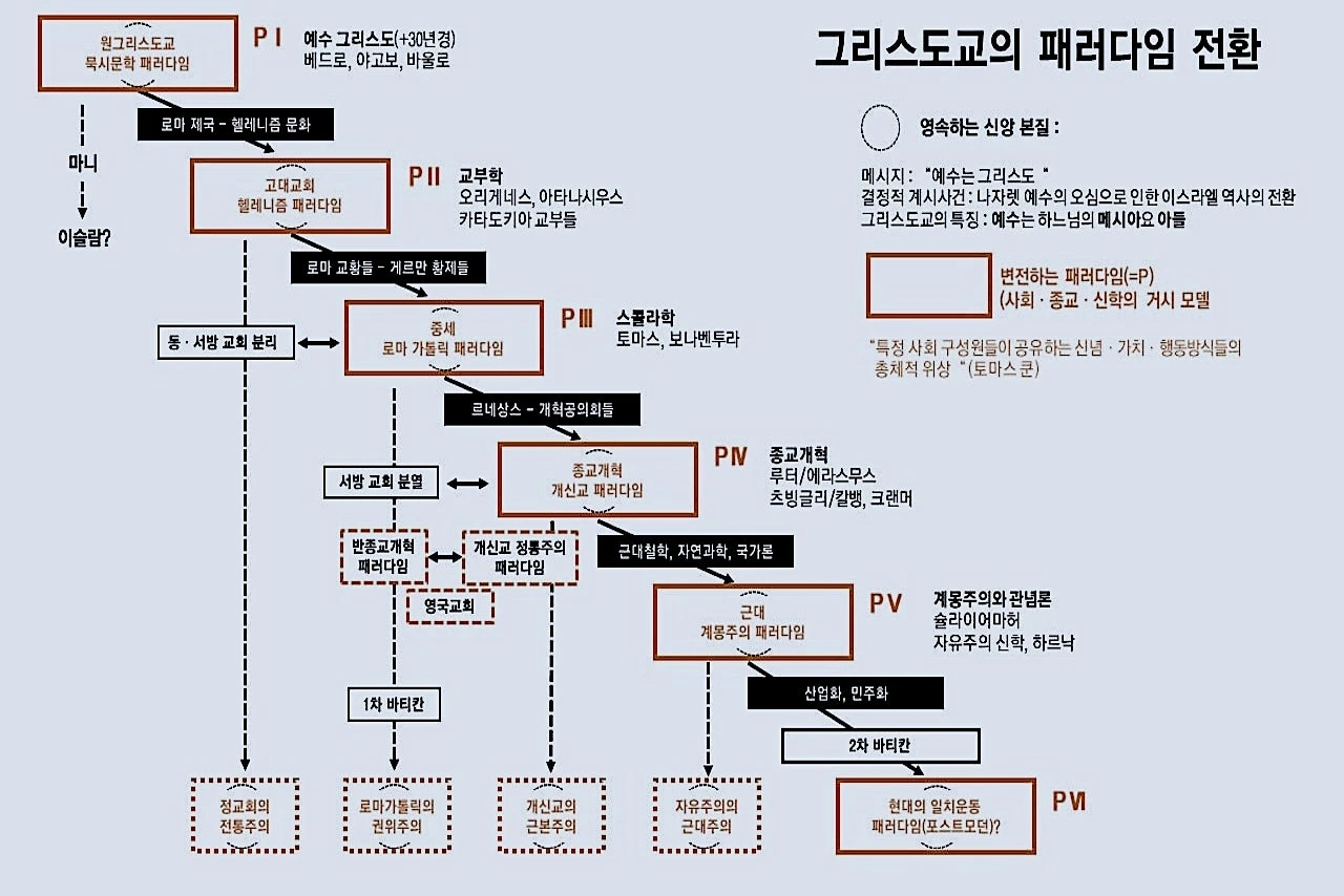 로마카톨릭 학자이면서도 교황의 오류설을 주장한 한스큉은 역사를 ‘패러다임‘의 전환의 과정으로 본다. 본질이라고 하는 ’그리스도’에 대한 신앙은 시대가 지나도 달라지지 않지만 ‘형태‘는 시대에 따라서 다른 옷을 입는다. 그러니깐 그리스도를 기반으로 하는 본질은 달라지지 않지만 형태는 초대교회나 교부철학이나 로마카톨릭이나 프로테스탄트나 달라질 수 있다는 것이다. 교회의 역사를 살펴보면 패러다임은 항상 바뀌었지만 그리스도의 영광과 구원은 달라지지 않았다. 본질이 안 바뀌었기 때문에 사실 모두가 같은 것이다.라고 보는 것이 한스큉의 관점이다. 이러한 접근은 상당한 논쟁을 불러일으킨다. 정말로 본질이 바뀌지 않은 것이 맞는가? 본질과 형태를 어떻게 구분하는가? 형태가 본질을 바꾸는 부분은 없는가? 이런 질문들을 해보면서 한스큉을 매주 읽고 있다. 오늘은 중세 로마카톨릭 패러다임에 대해서 알아본다.