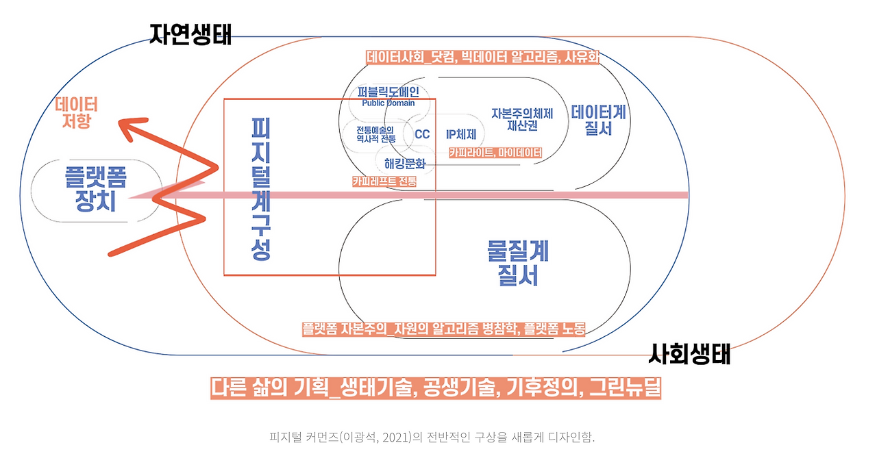피지털 커먼즈는 플랫폼자본주의의 견고한 질서와 축적의 코나투스를 살피면서도 대안 실천의 무기력을 깨기위한 커먼즈 운동을 강조하고 있다.