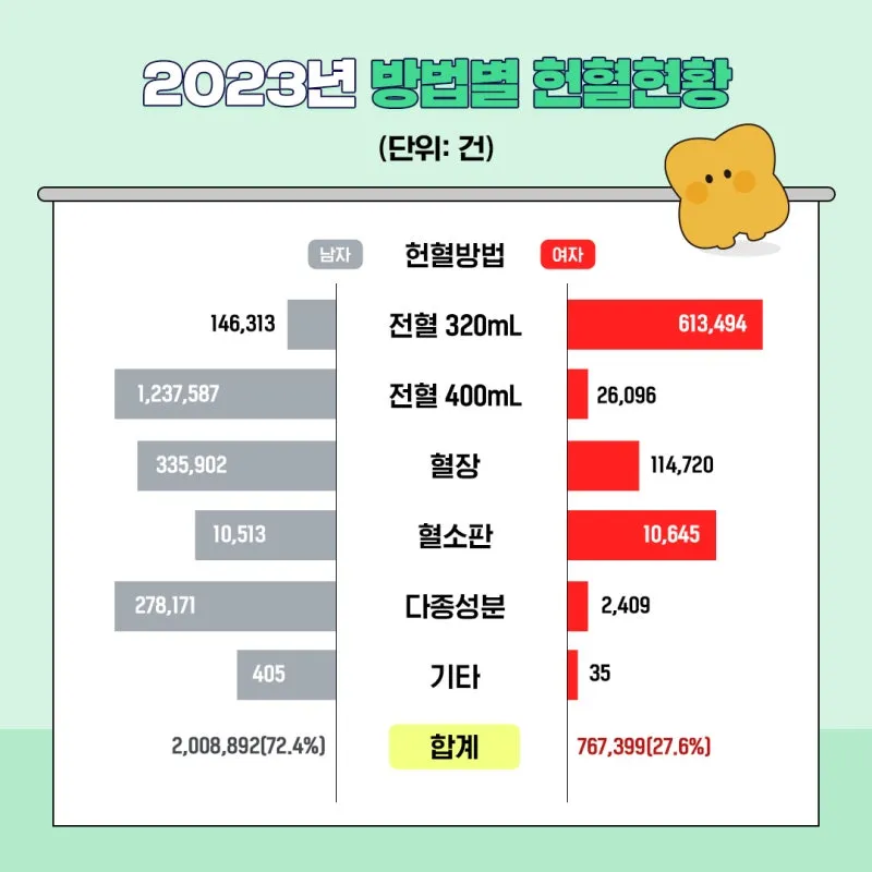 반면, 헌혈 참여 인원은 줄었지만 소수의 헌혈자들이 반복적으로 헌혈에 참여하며 1인당 평균 헌혈 횟수는 2.26회로 증가했다. 이는 혈액 공급이 소수의 헌혈자들에게 의존하는 구조로 변해가고 있음을 의미한다.