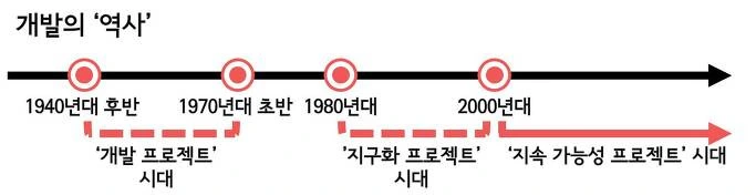 그러나 구조 조정 정책이 초래한 빈곤층의 사회적 안전망 해체와 자연 자원의 무분별한 착취에 대한 비판이 전 세계적으로 거세지면서, 1990년대에는 개발 담론의 대규모 전환이 일어났다. 1992년 리우 환경 정상 회의를 통해 환경 문제가 전 지구적 의제로 설정되었고, 지속가능한 발전(Sustainable Development)이라는 개념이 핵심 패러다임으로 자리 잡았다.
