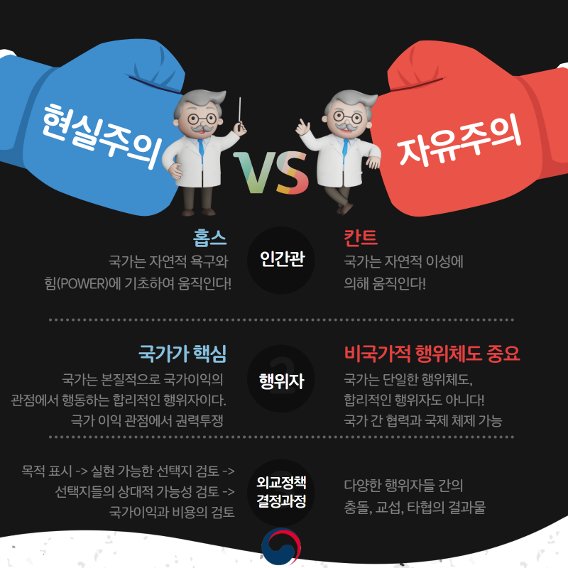 사랑만으로 평화를 유지할 수 없기에, 현실주의는 '힘에는 힘으로' 맞서는 힘의 균형을 정의의 기준으로 삼는다.