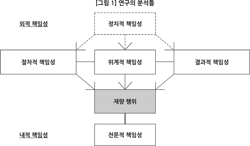 책무성이란 무엇인가? 무엇에 대해서 책임을 진다는 것인가? 학문적으로는 어떻게 정의할 수 있을까? 그 시작을 롬젝과 둡닉의 이론에서 시작하는 사람들이 많다. 롬젝과 둡닉은 1987년 논문을 통해 행정 책임성을 공공 기관과 구성원이 직면하는 복잡한 기대를 관리하는 메커니즘으로 정의했다. 책임성은 단순히 사후적인 처벌을 의미하는 것이 아니라 조직 안팎의 이해관계자가 요구하는 다양한 가치를 조율하는 수단이다. 이들은 행정 환경이 변화함에 따라 책임성의 형태도 다변화되어야 함을 강조하며 분석의 틀을 제시했다. 현대 공공 행정에서 책임성 개념은 투명성과 효율성을 동시에 달성하기 위한 핵심적인 요소로 다루어진다. 이 논문은 통제의 원천과 강도에 따라 책임성을 네 가지로 분류하여 행정 현장의 복잡성을 설명하고자 한다.