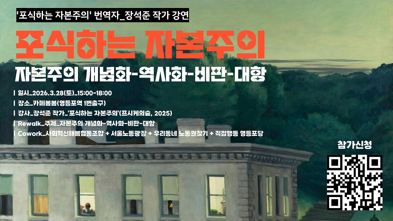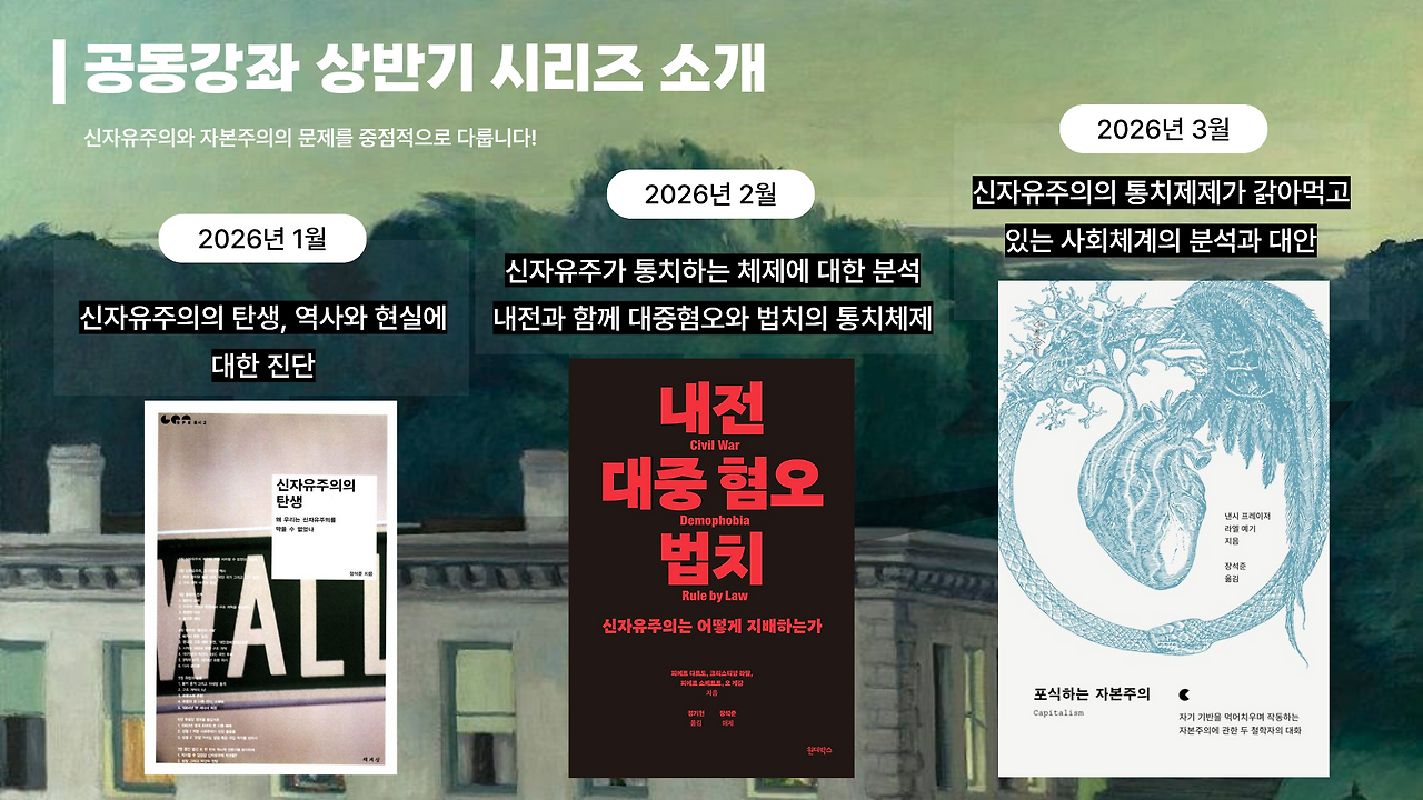 장석준 작가님과 함께하는 자본주의 3부작을 마쳤다. 거대한 서사에 이어 대안까지. 오랜만이면서 반가웠다. 이제 낸시프레이져가 80세이시니 우리가 대안을 만들고 다듬어야 한다. 이글은 3번째 강의인 포식하는 자본주의를 듣고 정리한 글이다.