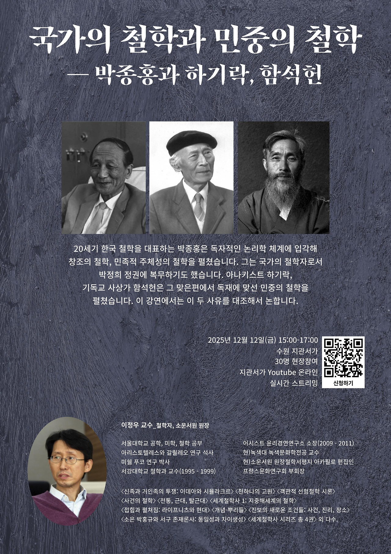 한국 현대 철학의 거목으로 불리는 박종홍은 일제강점기부터 현대사에 이르기까지 주체적 사유를 정립하려 노력한 인물이다. 1903년 평양에서 태어난 박종홍은 서당에서 한학을 익히고 평양보통학교에서 근대 학문을 접하며 성장했다. 3·1 운동 현장에서 목격한 민족적 시련은 철학의 실천적 사명을 고민하게 만든 결정적인 계기가 되었다. 경성제국대학 철학과에서 서구 현대 철학을 전공한 이후 일본 철학의 영향에서 벗어난 '우리 철학'을 갈구했다. 해방 이후 서울대학교 교수로 재직하며 수많은 제자를 양성했고 한국 철학계의 기틀을 다지는 데 헌신했다. 철학이 단순히 관념적인 유희에 머물지 않고 현실의 문제를 해결하는 구체적인 힘이 되어야 한다고 믿었다. 이러한 신념은 훗날 박정희 정권의 핵심적인 국가 설계자로 참여하는 사상적 배경이 되었다. 오늘날 박종홍에 대한 평가는 한국 철학의 주체성을 확립했다는 찬사와 독재 정권을 정당화했다는 비판 사이에서 극명하게 갈린다.