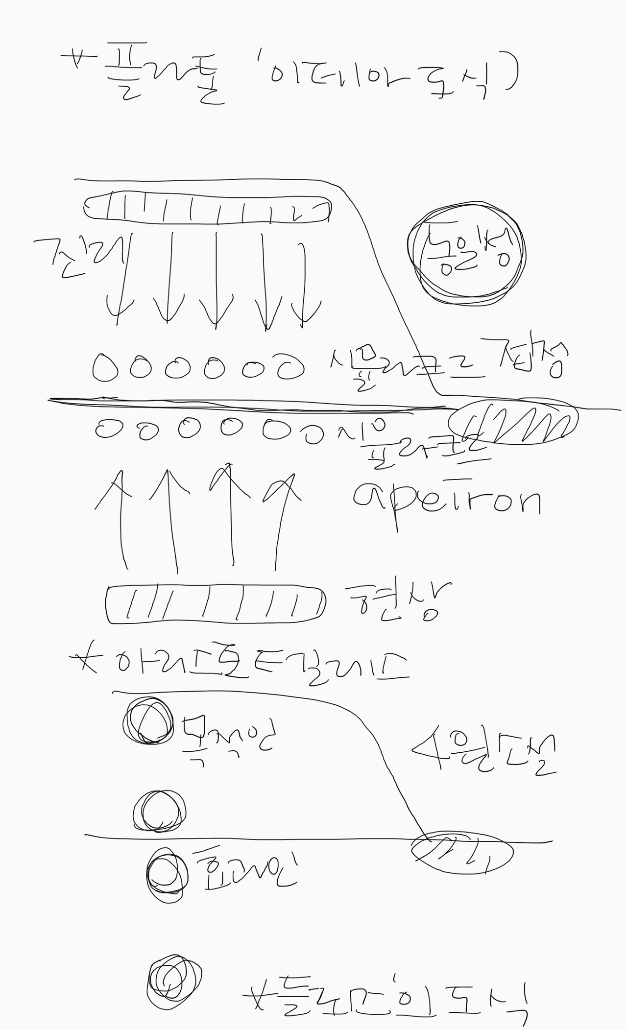 서양철학사는 크게 이데아와 물질로 나누어진다. 플라톤의 계보에서는 '아리스토텔레스-데카르트-칸트-헤겔-쇼펜하우어' 같은 주지주의 전통이 발달하게 되고, 플로티누스의 계보에서는 '브르노-스피노자-루소-베르그송-들뢰즈'로 이어지는 자연철학자들이 발달하게 된다. 이러한 구분은 진리nous가 어디에 있는가를 규정하는 것에 따라서 달라진다. 진리가 자연에 있으면 물질을 더 중요시하며 실재계에서 혁명을 일으키는 사람들이 된다. 진리가 이데아에 있으면 주지주의자가 되고 이것은 서양철학의 큰 흐름을 이룬다. 쉽게 말하면 형이상학과 형이하학의 싸움이라고 할 수 있고 이것을 연결하려고 하는 철학자들도 여럿있었다는 것을 볼 수 있다.