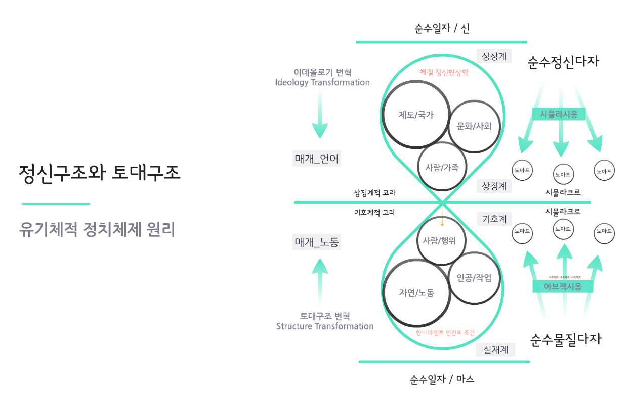 다만, 시대적으로 상상계가 더 영향력을 발휘하는가? 아니면 실재계가 더 영향력을 발휘하는가에 따라서 개인의 삶과, 가족공동체, 사회와 국가의 모습과 운영이 달라졌던 것이다. 중요한 것은 역사의 모든 상황에서도 어떤 방식으로든 플랫폼이 만들어졌다는 것이고, 그 플랫폼들의 성격은 항상 상상계와 실재계가 만나는 방식이었다는 것이다. '민주주의' 편에서 보겠지만 상상계와 실재계의 연결로 탄생한 '상징계'는 하나의 개념을 만들어냈었고 개념의 플랫폼 안에서 상상과 실제가 연결되는 것이 보통이었다. 우리는 상상의 변화와 실제 흐름의 변화를 연결시켜 '플랫폼 민주주의'라는 상징으로 부르고 있는 것이다.