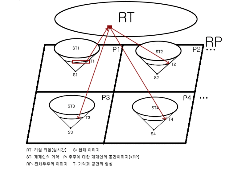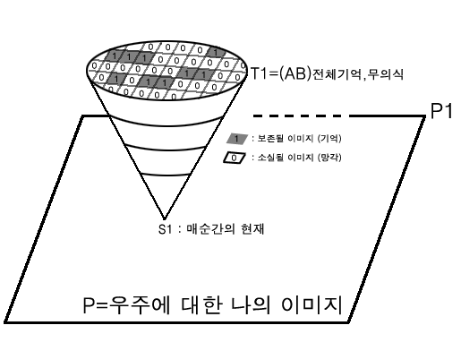 파동에서 계속해서 이미지들이 생성될 때 나의 몸에서 일어나는 제한된 이미지들과 전체적인 측면에서 제한없은 이미지들을 생각해 볼 수 있다. 내 몸에서 만들어지는 지속적인 이미지들은 나의 기억에서 나를 형성하고 세상에서 만들어지는 이미지들은 계속해서 역사속에 기록되는 것이다.