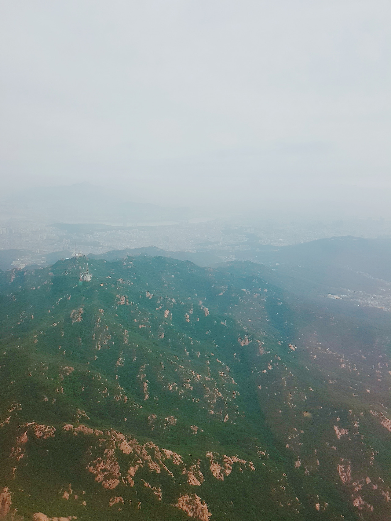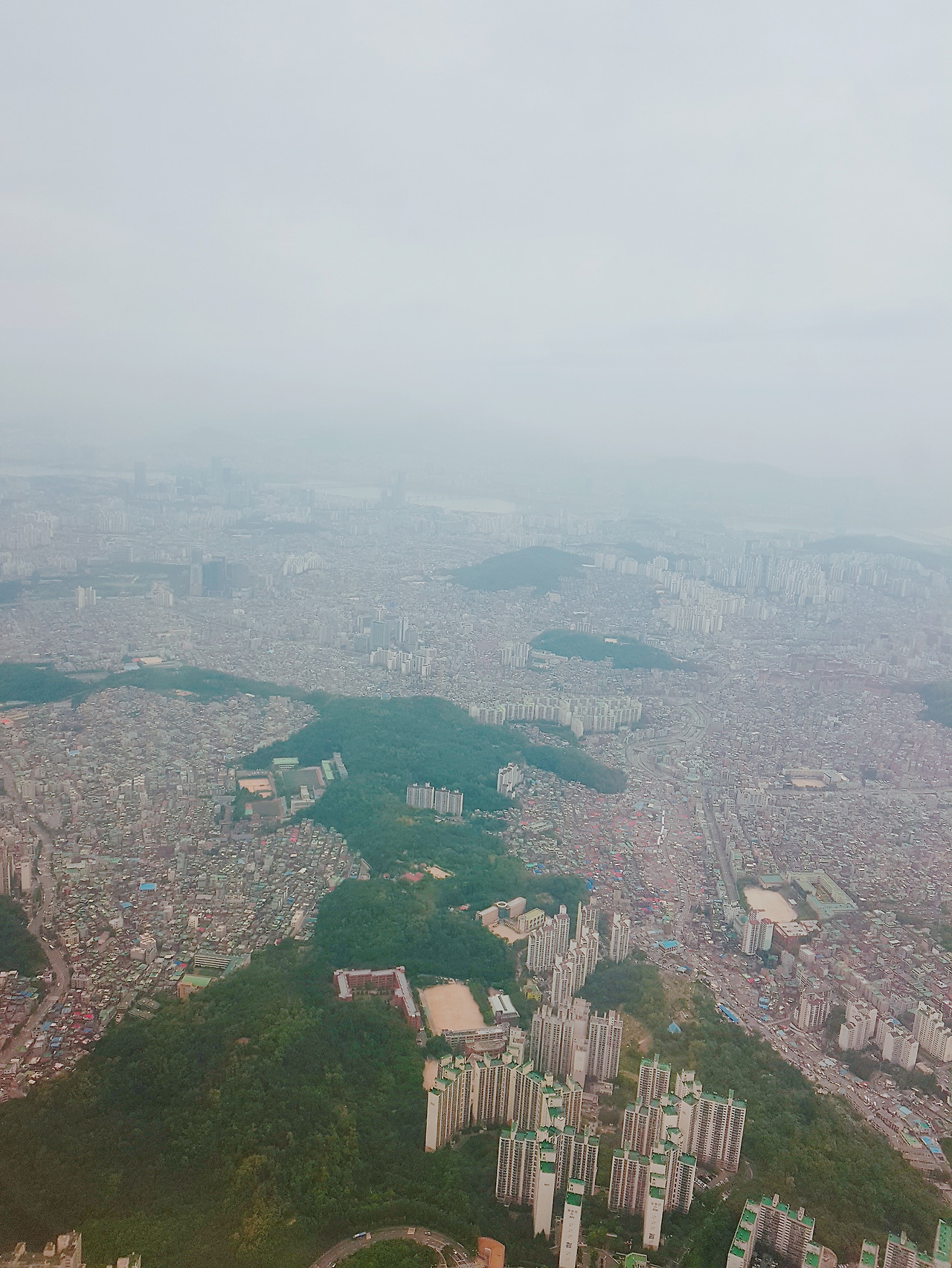 혼자서 돌아오는 비행기에서 저 멀리 서울 시내가 보인다