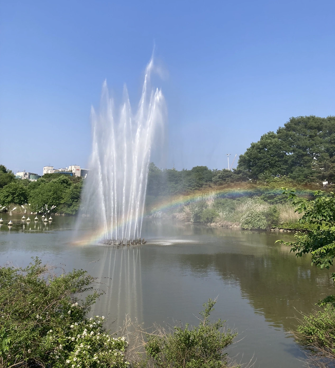 영화처럼 공원 한가운데에 무지개가 떠올랐다.