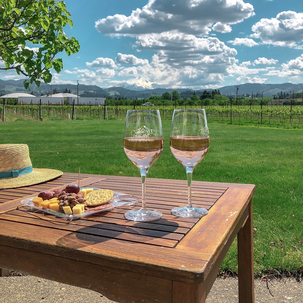 예쁜 로제 와인을 후드산을 보며(자세히 보면 사진에서도 보인다..) 마시니 여기 또한 천국이었다.