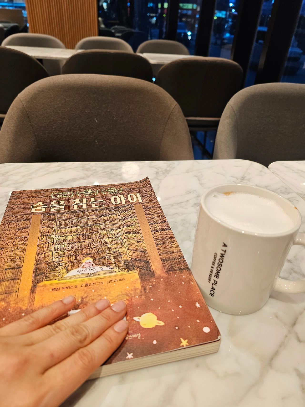 때마침 내겐 1시간 정도의 시간이 주어졌다. 첫째가 학원 가고 둘째가 학원에서 돌아오기 전까지의 시간! 거기다 오늘까지 소진해야 할 커피쿠폰도 있었다. 밀려있는 집안일도 있고 카페까지 걸어가기도 귀찮아서 그냥 포기해야 하나? 잠시 생각했다. 하지만 이미 학기 초에 너무 바빠 마트 기프티콘 3만 원어치를 날린 후였다. 갑자기 이건 꼭 마셔야겠다는 생각이 들었다. 일과 관련해선 아무 생각도 하고 싶지 않아서 아까 빌린 그래픽 노블만 챙겼다.