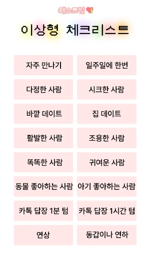 이 썸을 가지고 내가 정식으로 연애를 해도 좋을지, 왜 좋다고 생각하는지를 이해하며 본인을 알아가 보자.