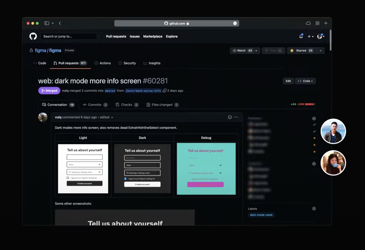 Dark mode week를 진행하며 업무에 관련된 질문에 답하고, 풀 리퀘스트(PR) 및 토큰을 업데이트하는 중앙 팀도 운영했다.