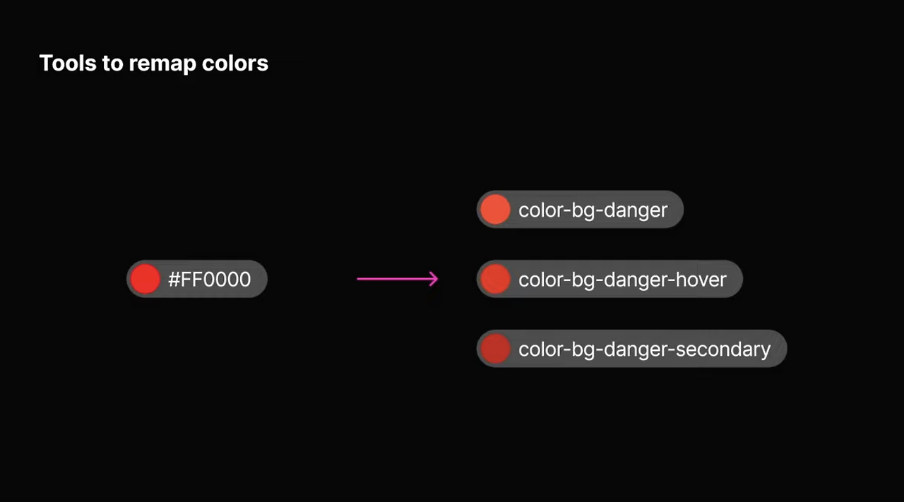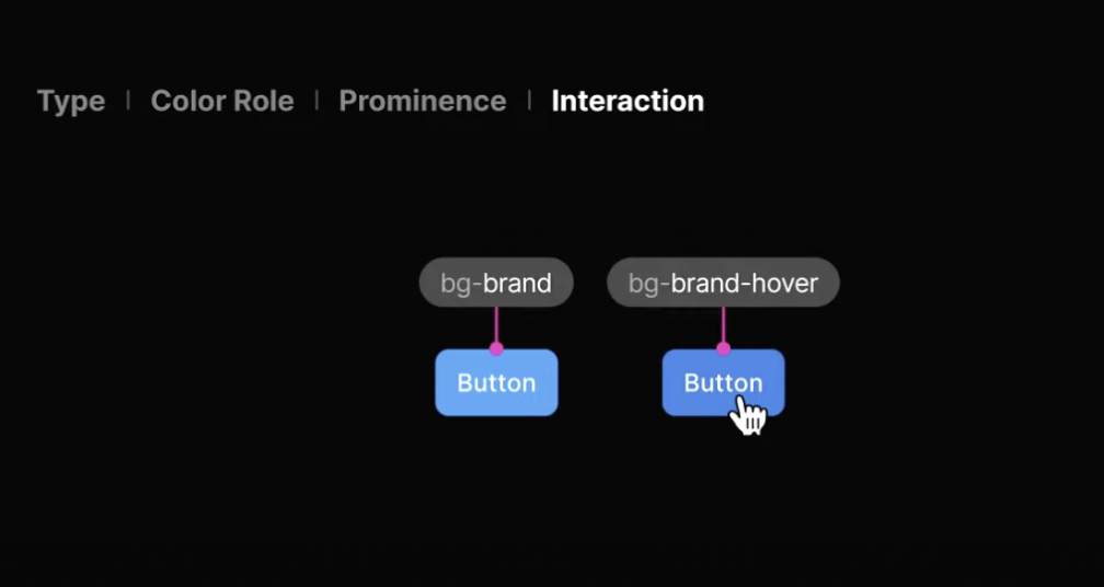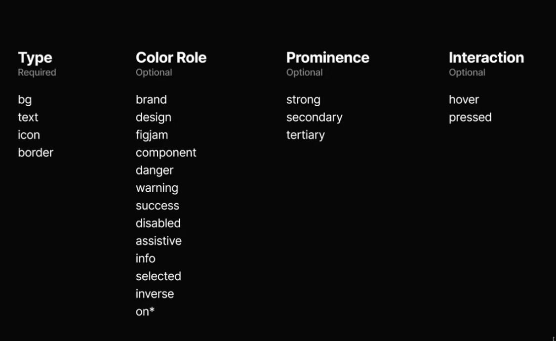 위의 이미지와 같이 이를 모두 적용하게 되면 'color-text-ondanger-secondary-hover'와 같이 길게 표현되지만, 이렇게 복잡한 스키마로 구현된다는 것은 곧 네가 만들고 있는 서비스의 다양한 인터렉션들과 다양한 테마들을 쉽게 적용할 수 있다는 뜻이다.