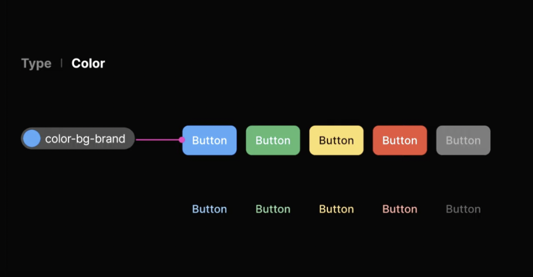 그래서 이를 시멘틱 한 방식으로 'color-brand'로 이 버튼의 semantic token으로 정의한다면 색상이 다르더래도 각 제품의 브랜드 컬러로 사용되는 컬러를 그대로 사용할 수 있다.