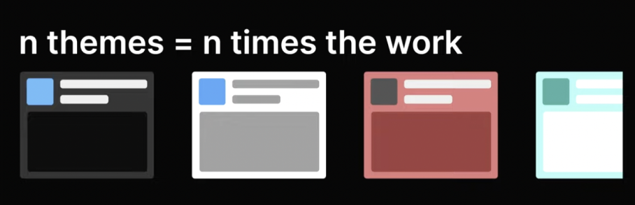 이 방식은 그저 다크 모드를 지원하기 위한 부분이 아닌, 어떤 모드가 오더래도 지원 가능한 형태로 제품을 만드는 것이다. 그래서 리브랜딩을 하거나, 새로운 제품을 론칭하거나 했을 때도 훨씬 쉽게 할 수 있을 것이다.