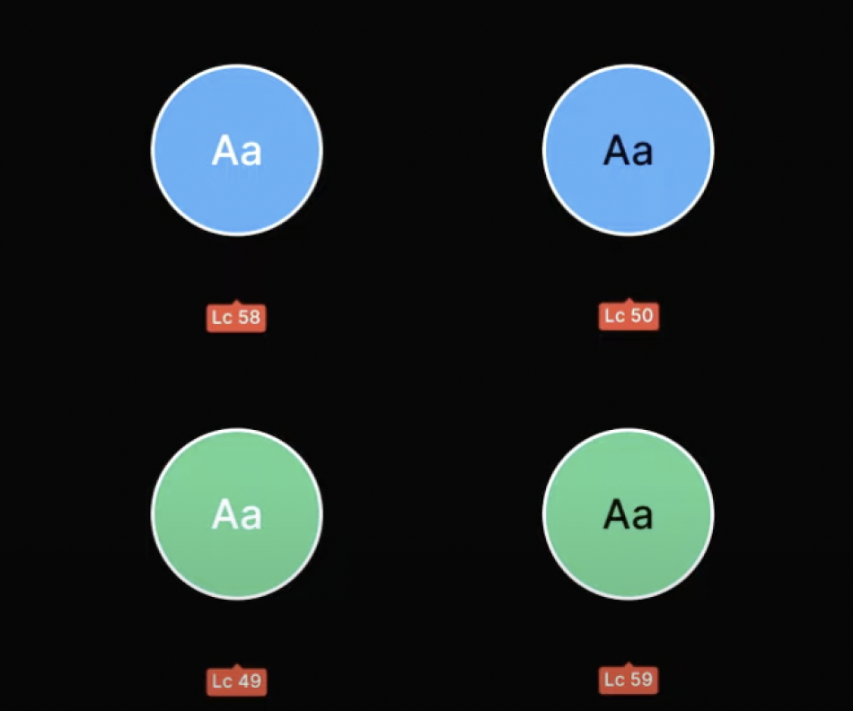 이처럼 인간의 눈에서는 두 개의 대비를 low light level 보다는 high light level에서 훨씬 잘 보게 되는데 이는 같은 색상이라 하더래도 다크 모드에서 훨씬 더 뚜렷하게 색상을 구분한다는 것이다.