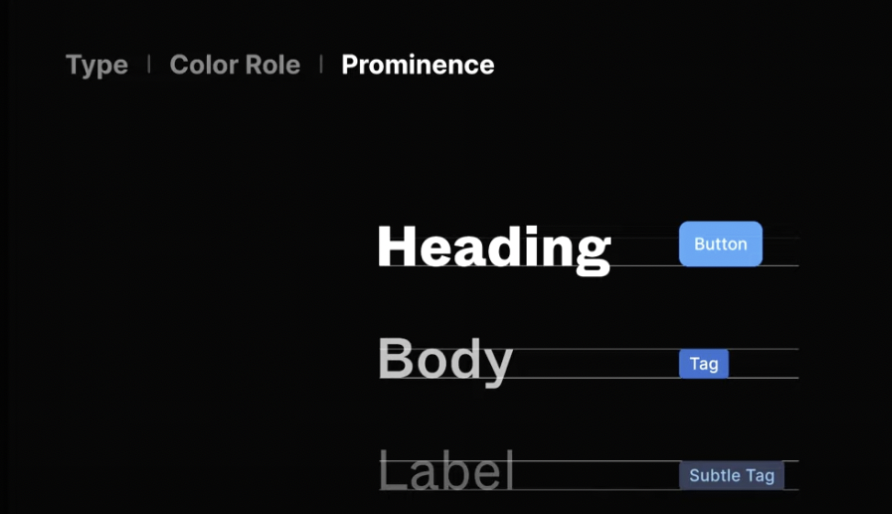 시멘틱 컬러는 매우 유연한 컬러 시스템을 제공하지만, 꼭 컬러에 국한되지 않고 더 나아가 다양한 곳에 적용할 수 있는데 바로 Prominence이다.(Hierarchy와 비슷한 개념)