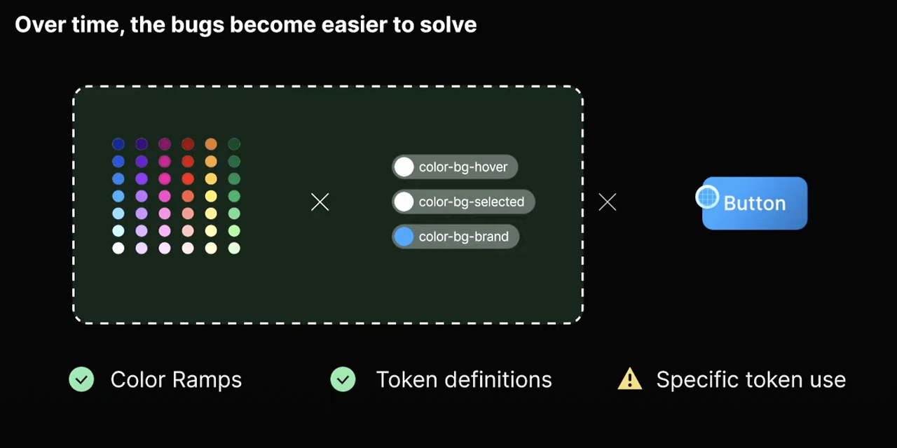 버그도 다양한 레이어에서 생길 수 있어서 컬러 팔레트의 밸류 값의 문제인지, 토큰에서 정의에서 발생한 것인지, 혹은 적용 시 잘못된 토큰으로 적용한 것인지 등을 체크해야 했기 때문에 이를 확인하며 버그를 고쳐나갔다.