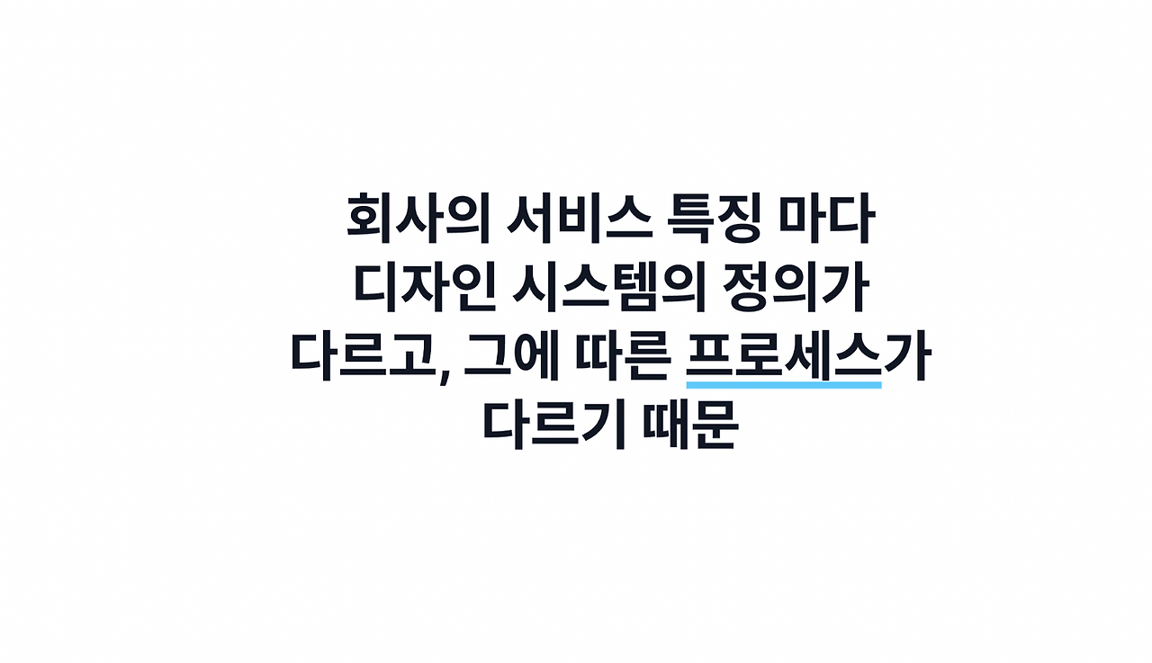그 이유는 회사의 서비스 특징마다 디자인 시스템의 정의도 다르고, 그에 따라서 프로세스 또한 다를 수밖에 없기 때문입니다.