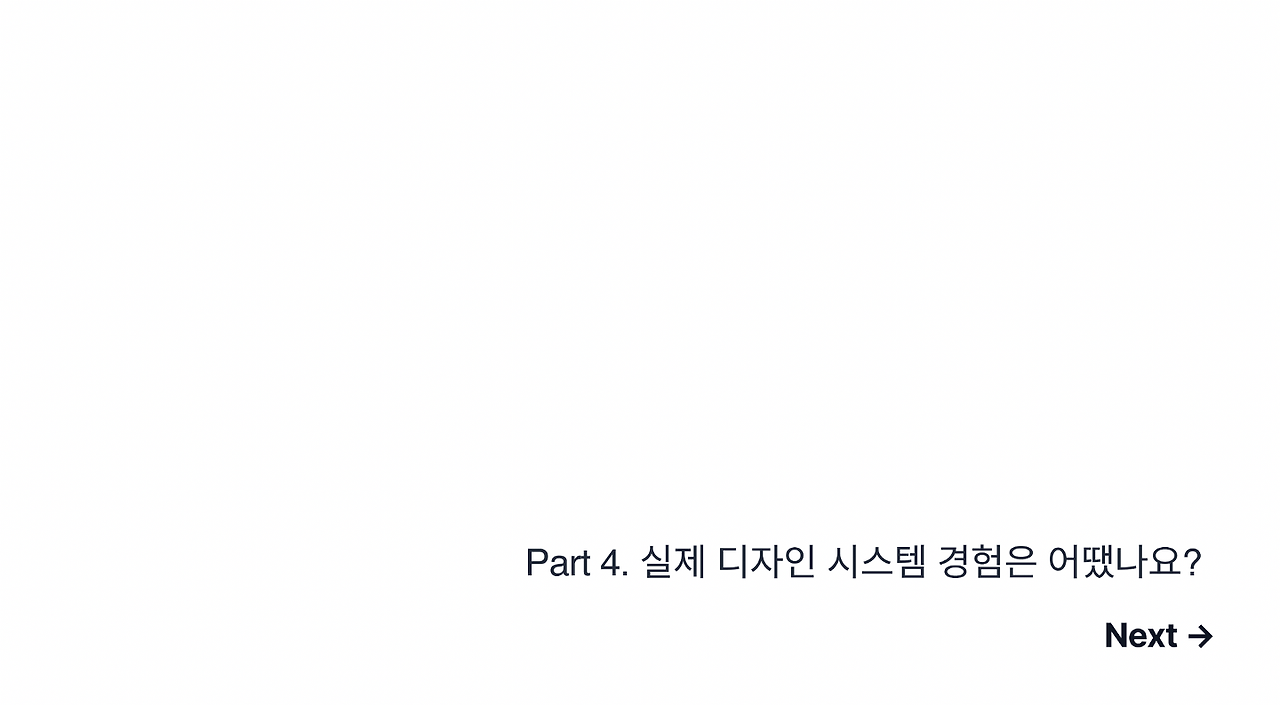 다음은 Part 4인 ‘실제 디자인 시스템은 어땠나요?’(feat.프로덕트 디자이너 vs 플랫폼 디자이너) 에 대해 설명하고자 합니다.