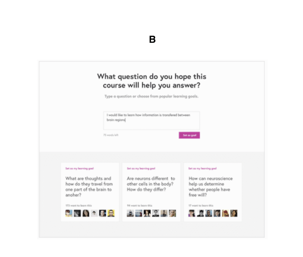 B는 공부 및 토론을 할 수 있는 소셜 네트워킹 서비스입니다. 여기서 보시면 해당 타이포의 대비 큰 여백으로 이뤄져 있는 하나의 콜론에 집중되어 있습니다. 또 하단에는 아티클을 읽는 싱글 테스크에 좀 더 집중이 되어 있고 토론하게끔 유저의 행동을 이끌어 내고 있습니다.