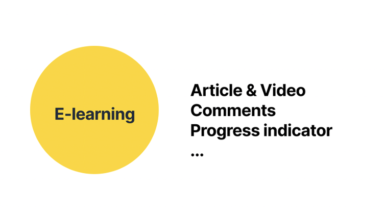 이러닝 즉 학습 앱은 아무래도 학습 앱이니깐 사용자가 학습할 내용이 본문으로 구성되거나 비디오로 제공이 될 것 같고, 또한 강의를 듣는 사용자들의 Q&A나 코멘트 같은 기능을 통해 답변이 달릴 것 같습니다. 또 얼마나 학습을 했는지 를 시각적으로 보여주는 진행에 관련된 UI도 있을 것 같습니다.