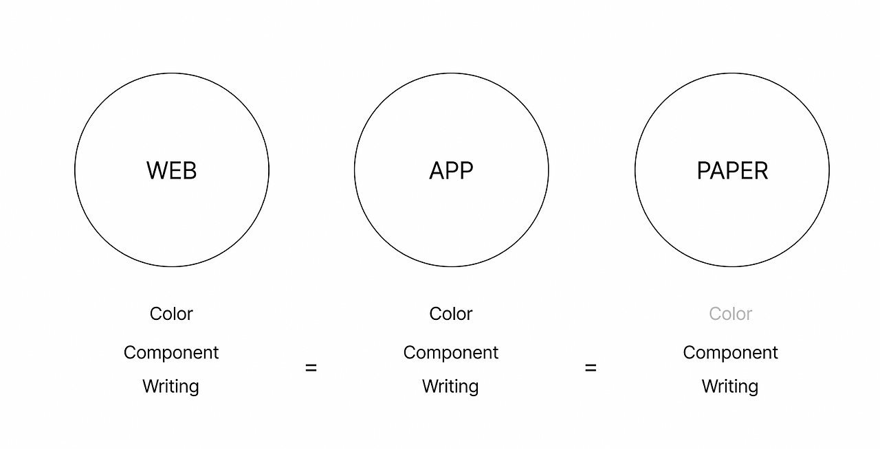 디자인 시스템의 목표 중 하나는 '일관성'이었습니다. 웹과 앱, 페이퍼와 같이 다양하게 제공되는 플랫폼이지만 결국 리디라는 하나의 서비스를 제공함으로써 일관된 서비스 경험을 제공하는 것은 중요한 목표였습니다.