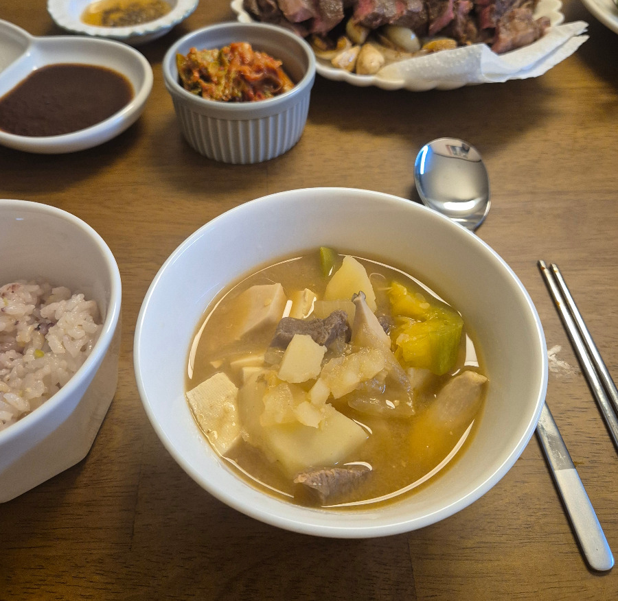 그저 뜨거운 물에 된장을 푼 거 같은 느낌의 국이랄까.