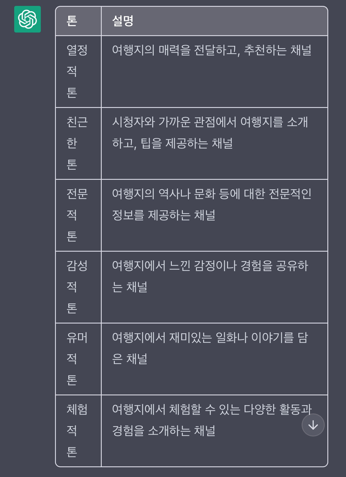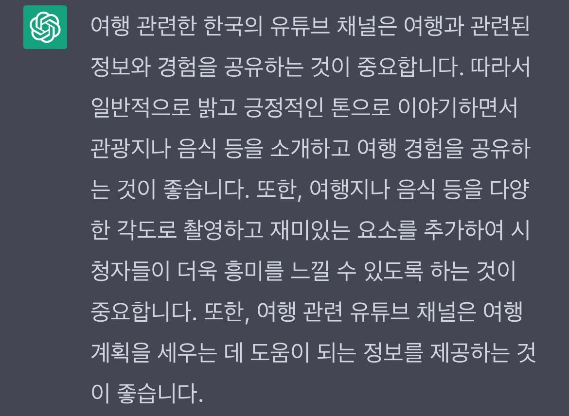 여행 관련 한국 유튜브채널은 어떤 톤으로 해야 하지?