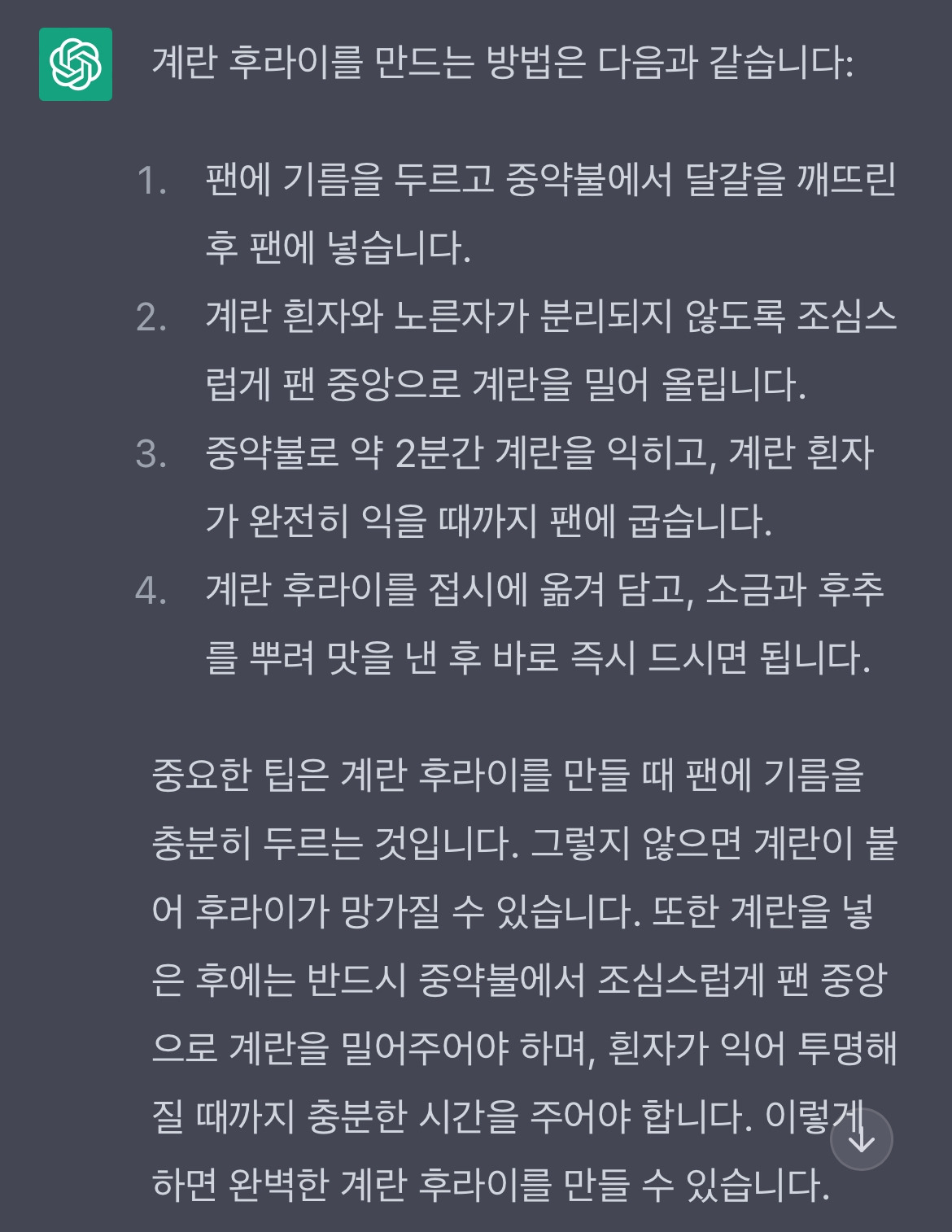 예를 들어 계란 프라이를 만드는 방법을 알려줘.