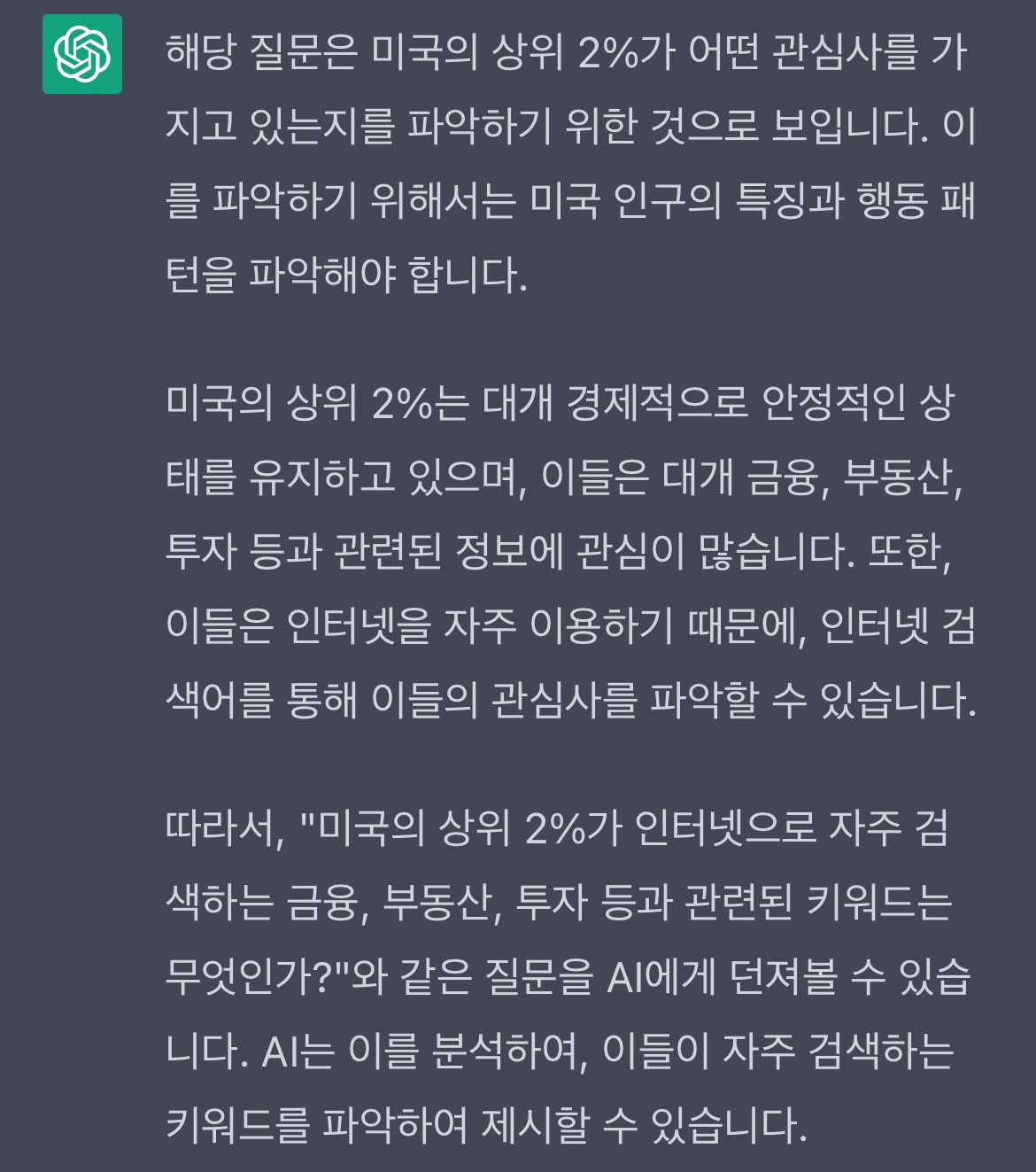 “미국의 상위 2%가 인터넷으로 자주 검색하는 금융, 부동산, 투자 등과 관련된 키워드는 무엇인가?”