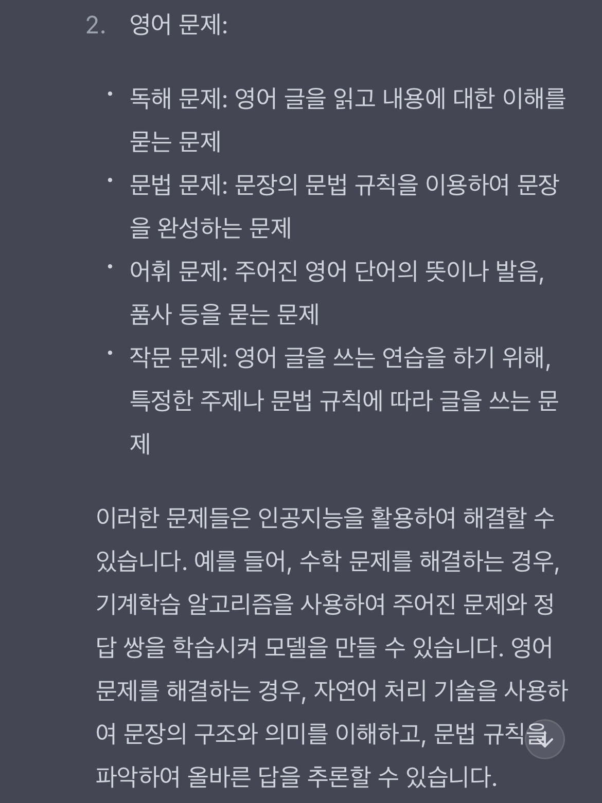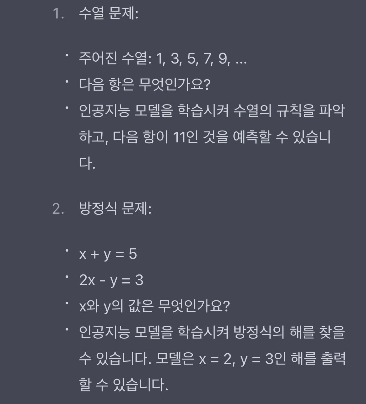 인공지능 모델을 학습시킨 후 문제 풀이를 시키네요.
