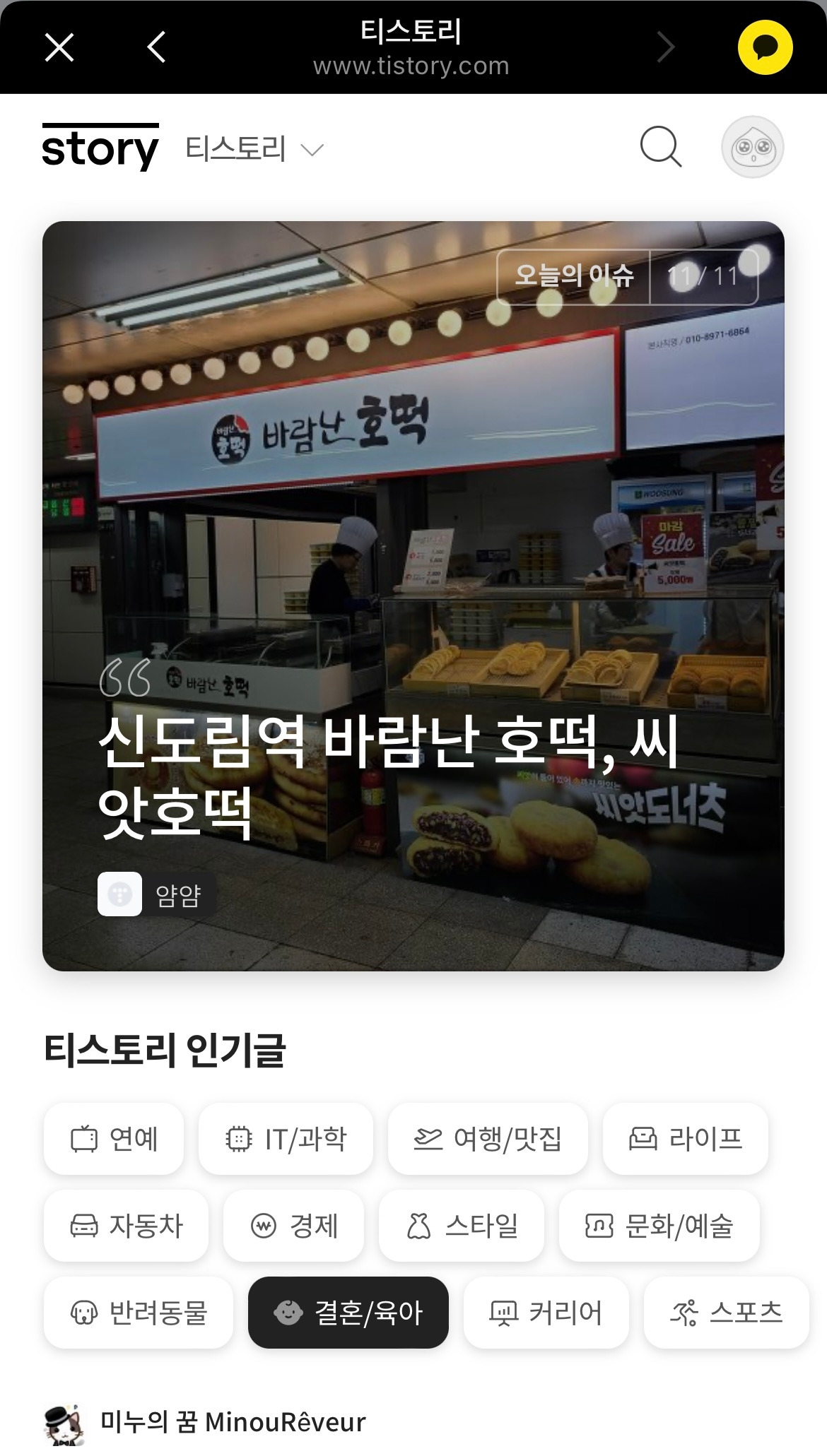 오늘은 스토리에 티스토리 육아 탭에 최신글에 제 글이 보이고 있어 뿌듯하더군요.