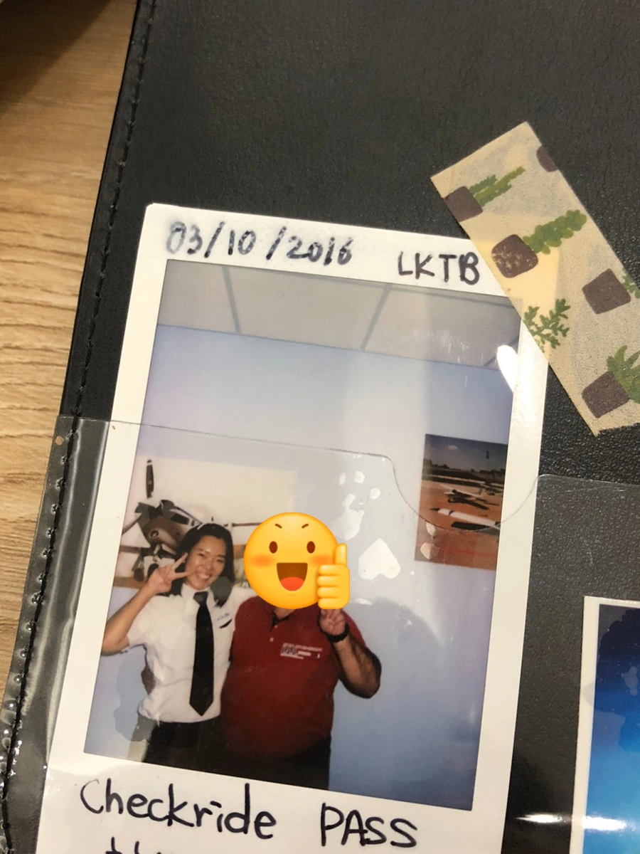 그 순간 얼마나 기뻤던지.. 어른이 되고 나서 무언가 내내 스스로 정한 목표를 이루고 성취한 게 얼마만인지. 그 느낌은 잊을 수가 없었다. 감독관님께 괜찮으면 사진을 찍고 싶다고 여쭤보았다. 흔쾌히 승낙해 주시며승낙해주시며 폴라로이드 한 장, 그리고 비행기가 서 있는 곳 앞에서 한 장을 찍었다.