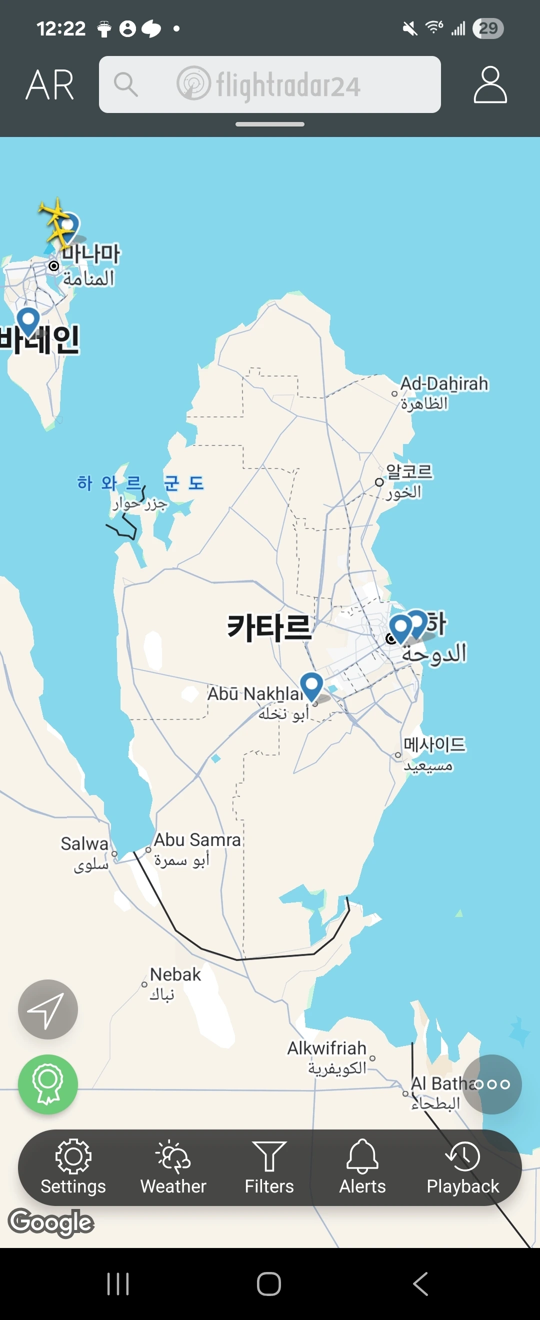 가장 바쁜 시간인 카타르 하늘이 텅텅 비어있다니. 다맘에 묶여 있던 비행기들이 집으로 돌아오고 있다. 아직 출발하지는 못하고.