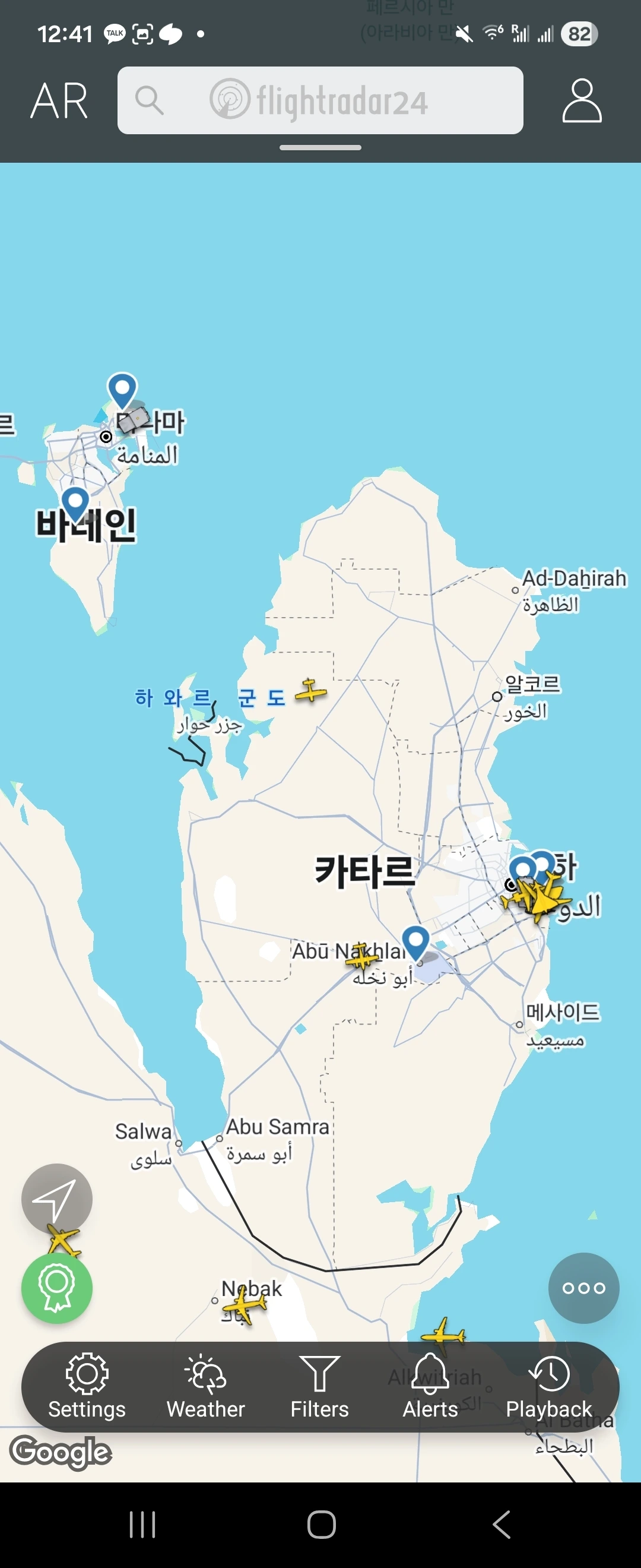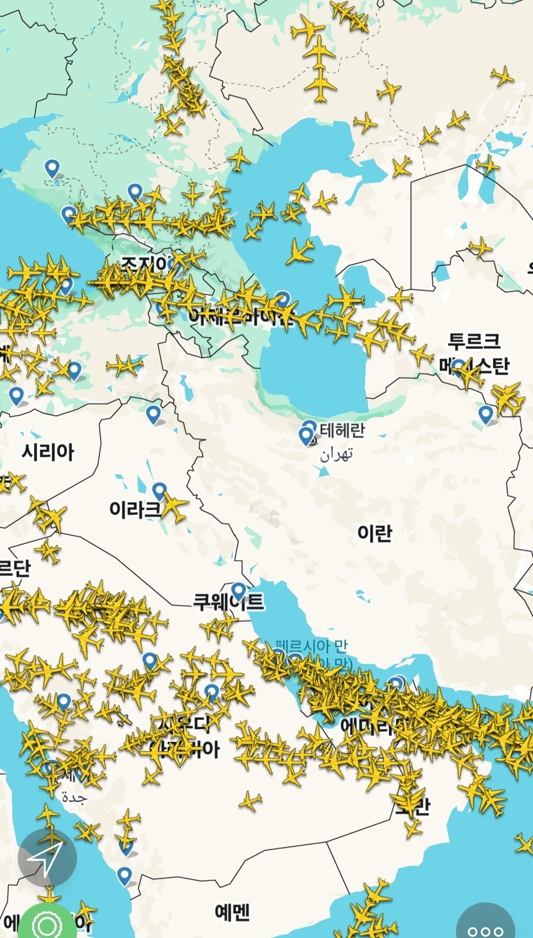 이스라엘이 테헤란에 미사일을 쐈다는 소식에 놀래서 flight radar 24 앱을 열었다.