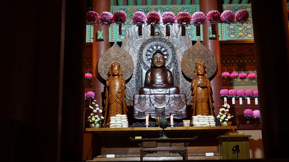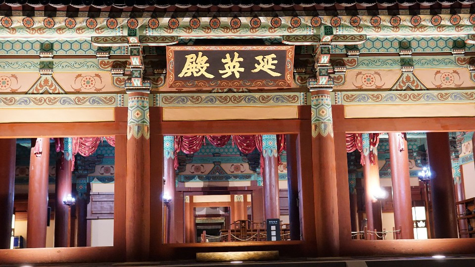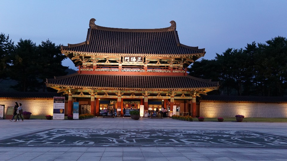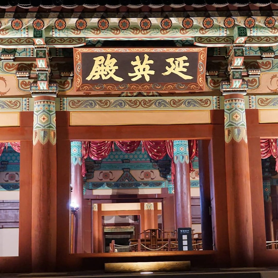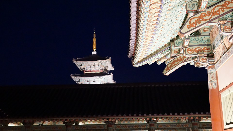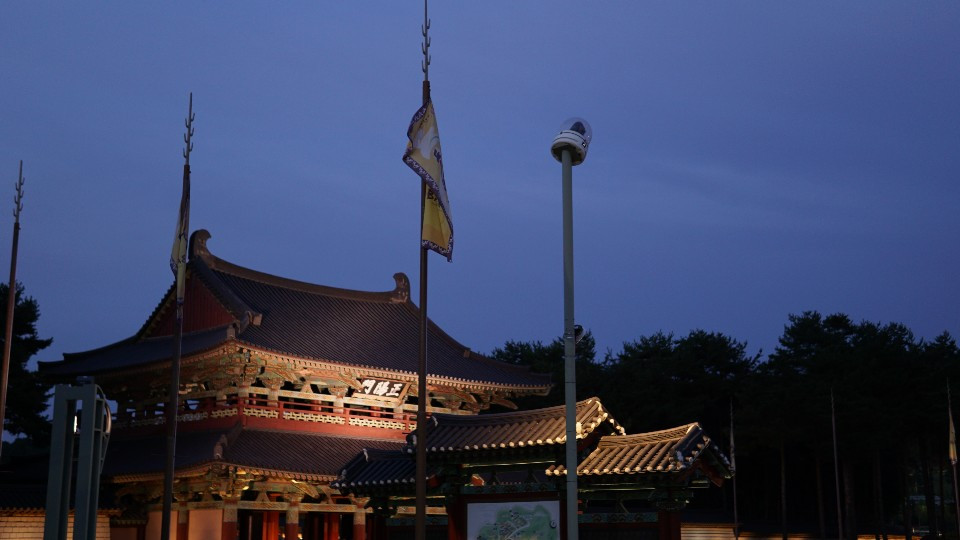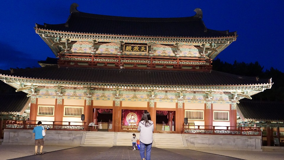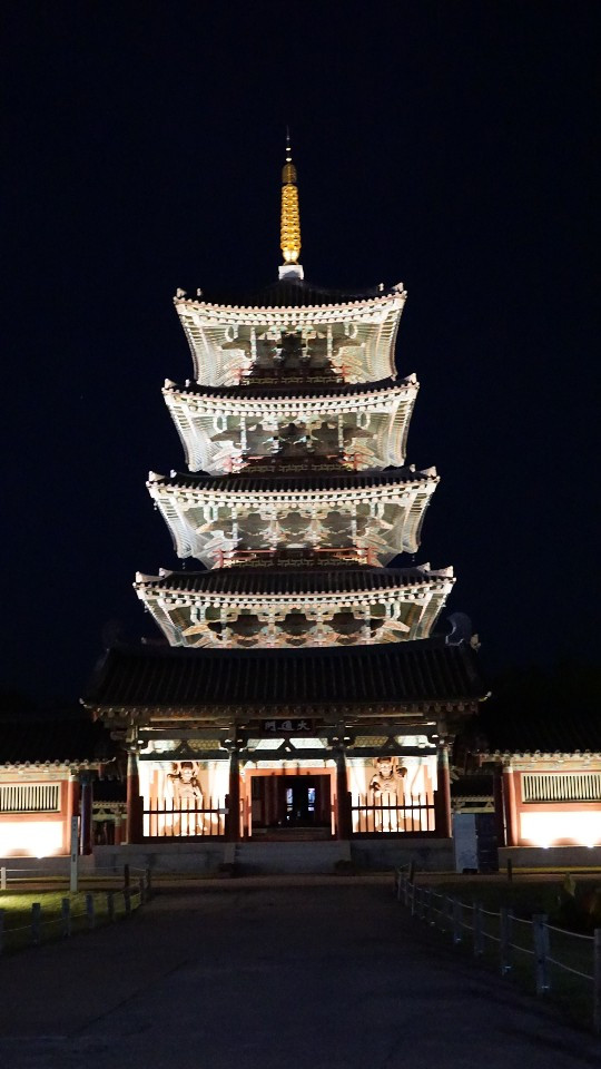 하지만 가장 좋았던 것은, 은은하게 켜져 있는 조명과 단아한 듯 화려한 백제의 단청이 감색 하늘과 어우러져 조화를 이뤄 '한국적인 미'를 뽐내는 풍경이었다.