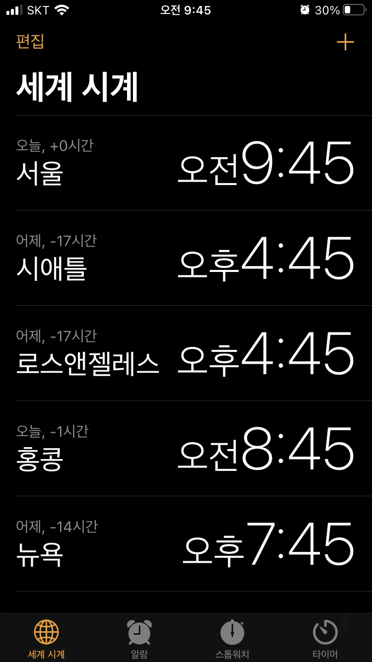 ‘아 시애틀은 지금 새벽 3시네.’