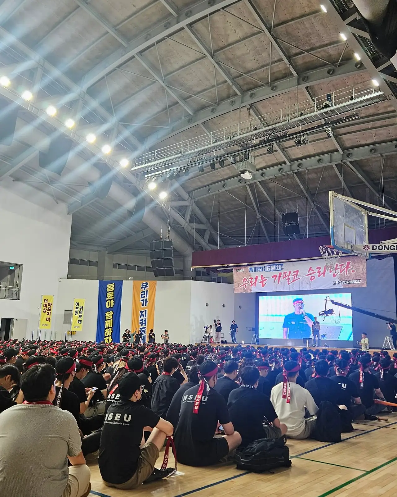 본 행사가 시작되자 '단결투쟁가', '파업가'같은 민중가요에 맞춰 팔뚝질하는 노동자의 풍경이 인상깊었다. 노동자들의 열기에는 두 가지 감정만 느껴졌다. 경영진에 대한 분노감과 동료들과의 연대의식, 이 둘 사이에 제3자가 낄 틈은 없어보였다.