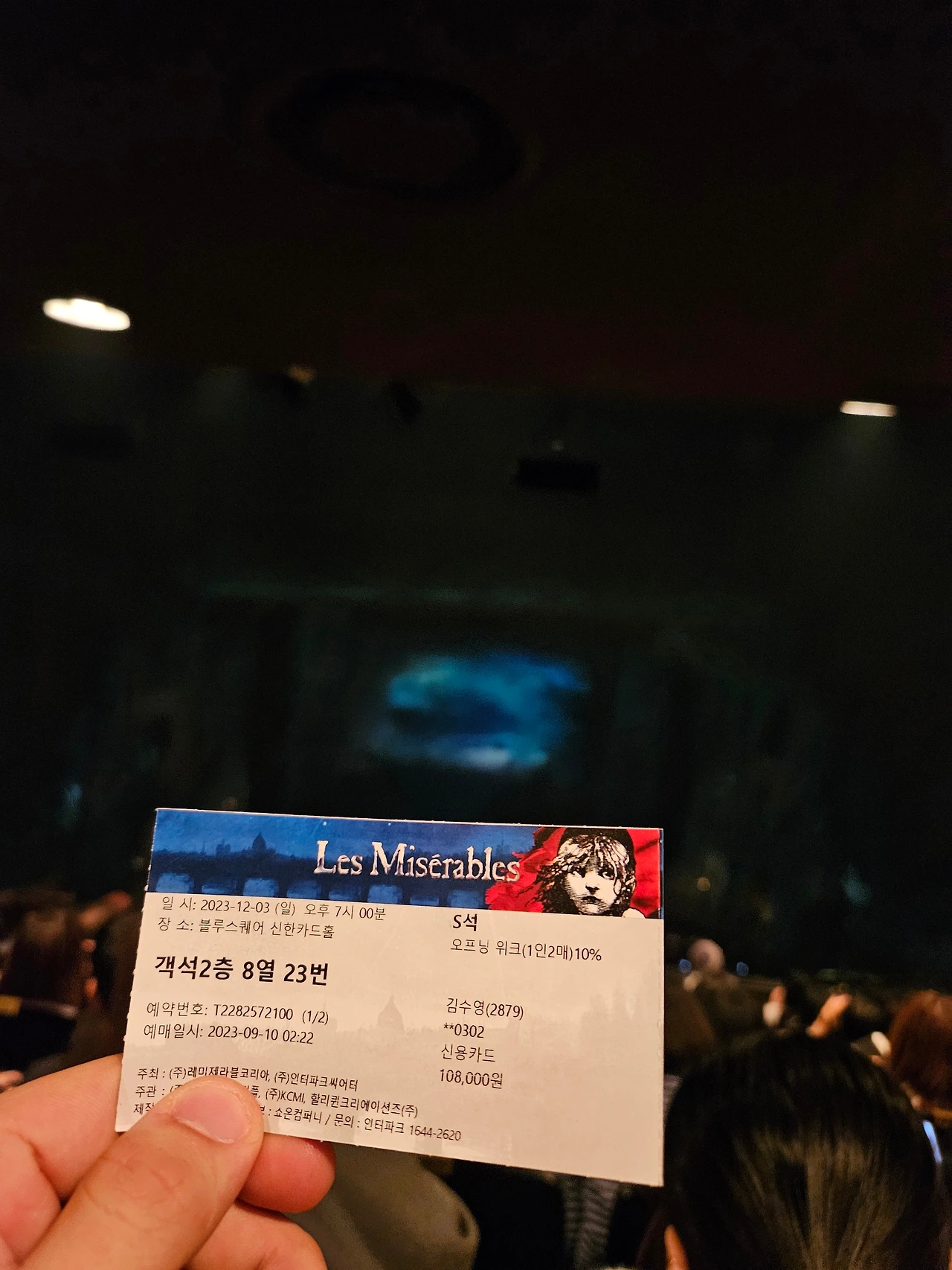 뮤지컬은 원작을 가공한 창작물 중 향유하려면 가장 비싼 돈을 지불해야 하지만, 그럼에도 뮤지컬홀에서 느껴지는 아우라가 있다. 혁명적 분위기와 인간예찬이 뒤섞인 황홀한 경험이었다!