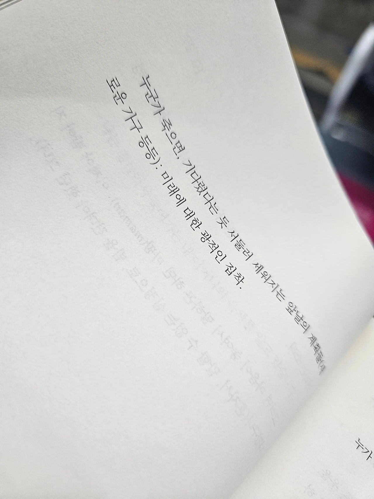 내용 자체도 일관성도 없고, 논리적으로 전개되지 않지만 모든 메모가 마망을 이야기한다. 빈공백들과 얆은 분량이지만, 결코 가볍지 않다.
