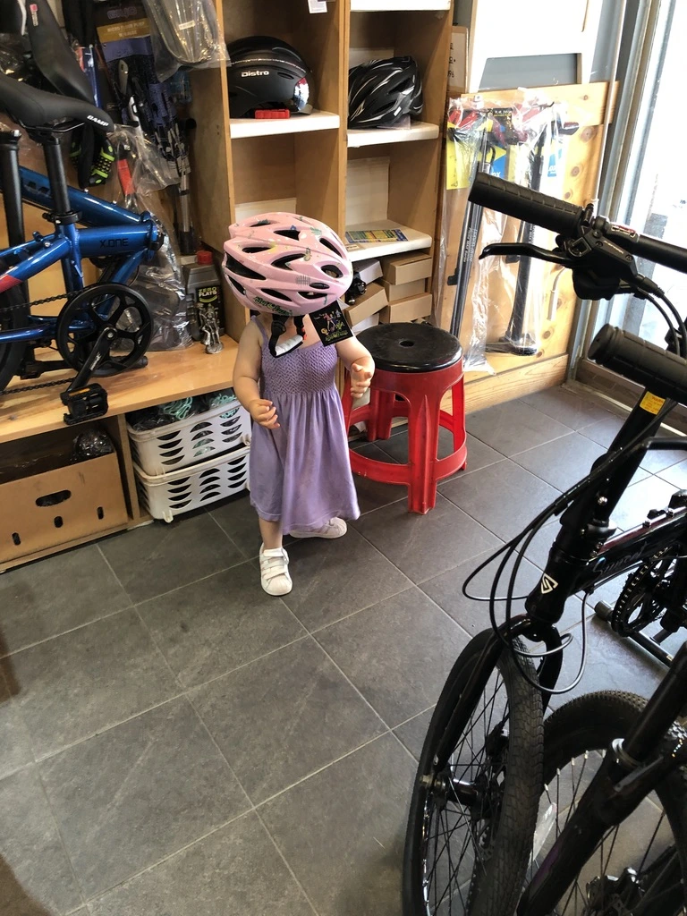 사장님과 이런저런 이야기를 나누고는 , 자전거를 선택했다. 유아 안장은 더 튼튼한 거 사서 넣으려고 했는데 바로 당장 애기 태우고 싶어서 , 자전거 샵에 있는 걸로 바로 장착을 했다.