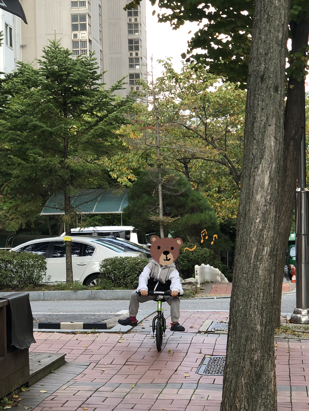 그리곤 어린이집 버스를 타러 나간다. 오늘 아이들의 픽은 밸런스 바이크가 되시겠다.