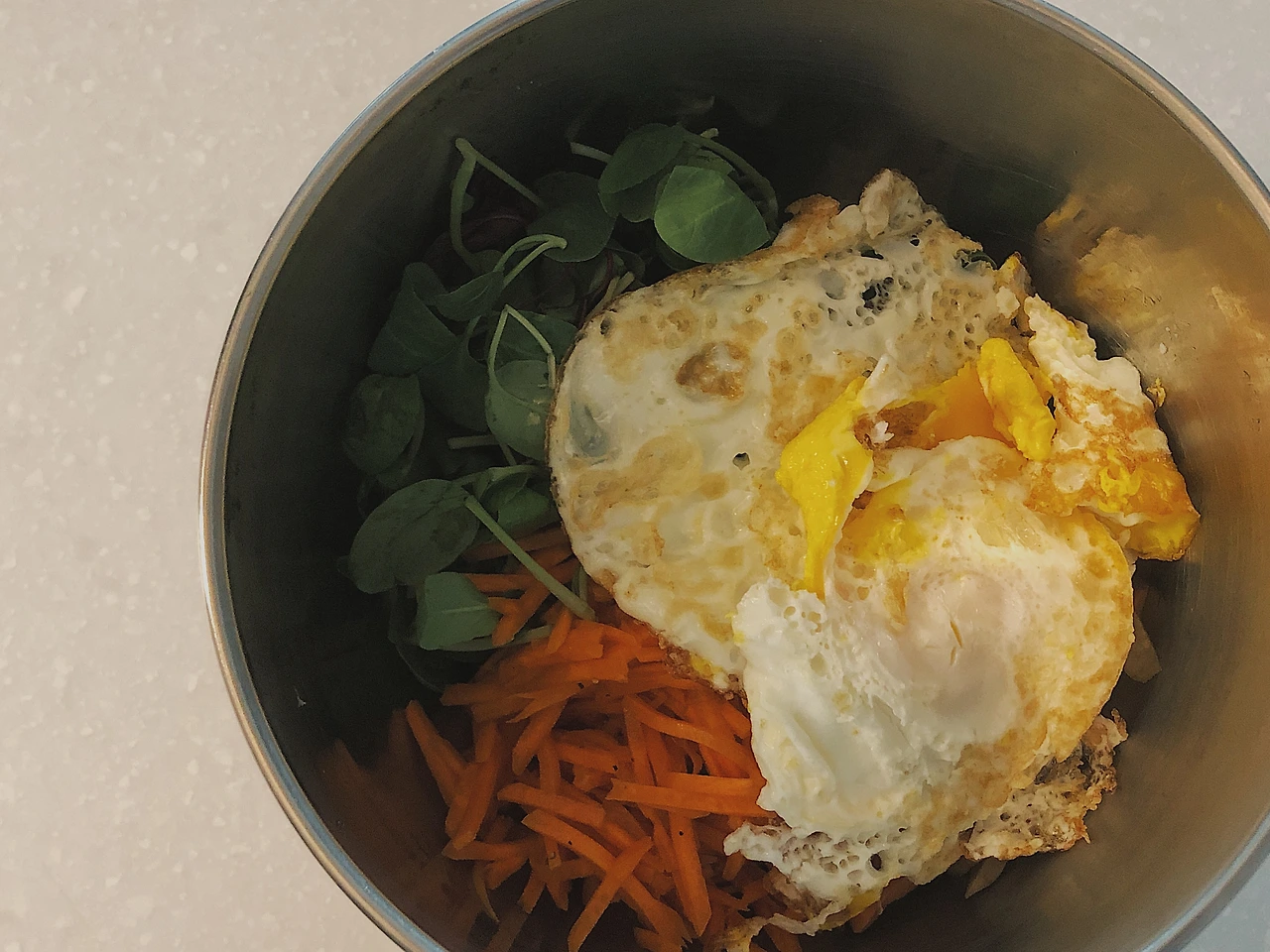 우리 집 1,2호는 몇 가지를 제외하고 크게 편식이 없는 편이라 이것저것 같이 해 먹기가 참 좋다. 이렇게 간장 넣고 비빔밥을 해주고 나는 무생채를 더 넣어 먹었다. 이러면 설거지도 간편하고 야채도 충분히 먹을 수 있어 참 좋다. 우울증 때문에 식욕이 없었는데 다행히도 치료 반년쯤 되는 요즘, 밥을 어느 정도 먹기 시작했다. 내가 비빔밥을 먹다니(감격) 어우러지는 맛이 참 좋다.
