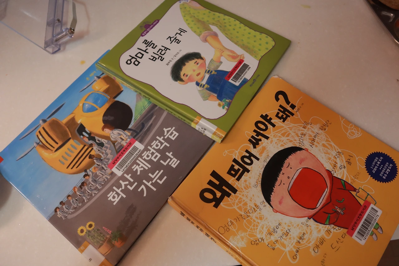 좋은 습관인지 아닌지는 잘 모르겠지만 보통 간편하게 밥을 먹거나 간식을 먹을 땐 꼭 책을 읽어 달라고 한다. 내가 가지고 있는 몇 개 안 되는 습관들 중 하나인데 아이가 이걸 배웠나 보다.