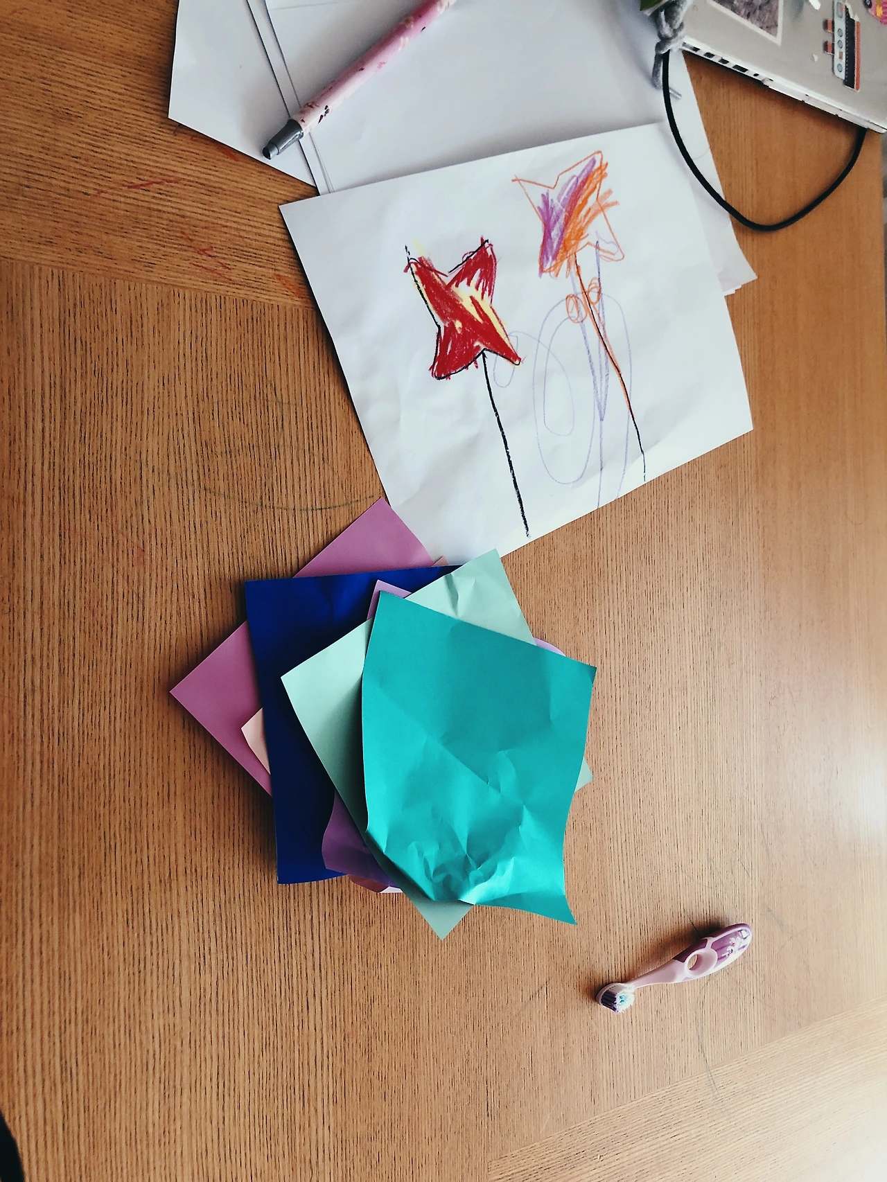 아이 나름 곱게 색종이 탑을 쌓아놓고 정리를 마친 후 등원을 한 것 같은데.. 괜히 더 미안해졌다.