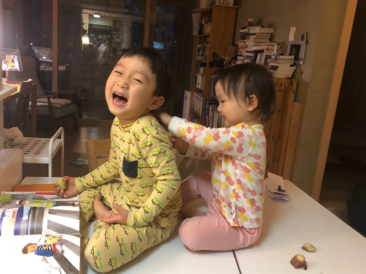 간지럽다고 자지러지는 1호와 오동통한 작은 손을 야무지게 오므려서 오빠의 등을 진지하게 긁어주는 2호의 모습. 다시 돌이켜 생각해봐도 웃음이 차오른다.