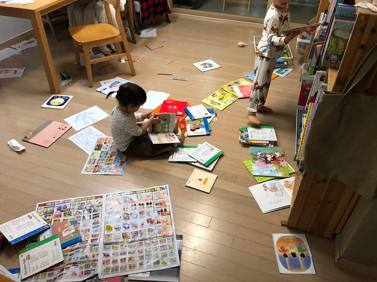 오전에는 우리 집 작은 친구가 낮잠을 자면 큰 친구가 영어영상을 보는 시간인데 , 그때 조금 쉬어가고 오후에는 간식을 먹여놓고는 그냥 내 책을 펼친다. 그리고는 한 30분 정도를 읽어간다. 그러다 보면 내 곁에도 와서 앉아있다가 가고 둘이 놀기도 하고 알아서들 시간을 보낸다. 아이들이 놀아달라 채근하면 엄마는 긴 바늘이 육이 올 때까지 책을 읽고 싶으니까 조금만 놀면서 기다려달라 요청을 했다. 그래야 나도 숨 쉴 수 있을 것 같아서.